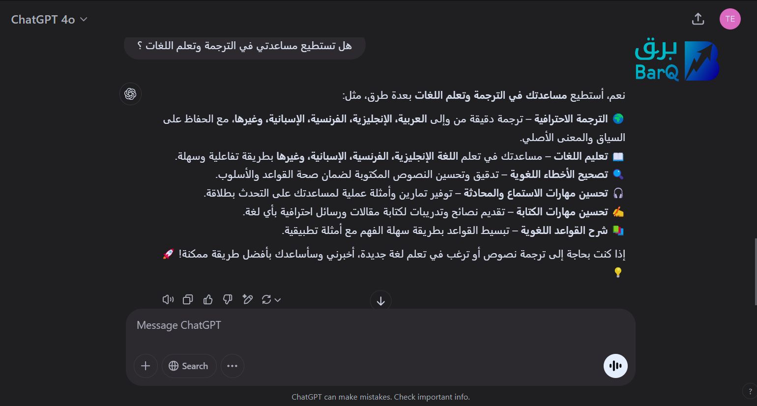 بيدعم اللغة العربية بالكامل ويفهم لهجتك